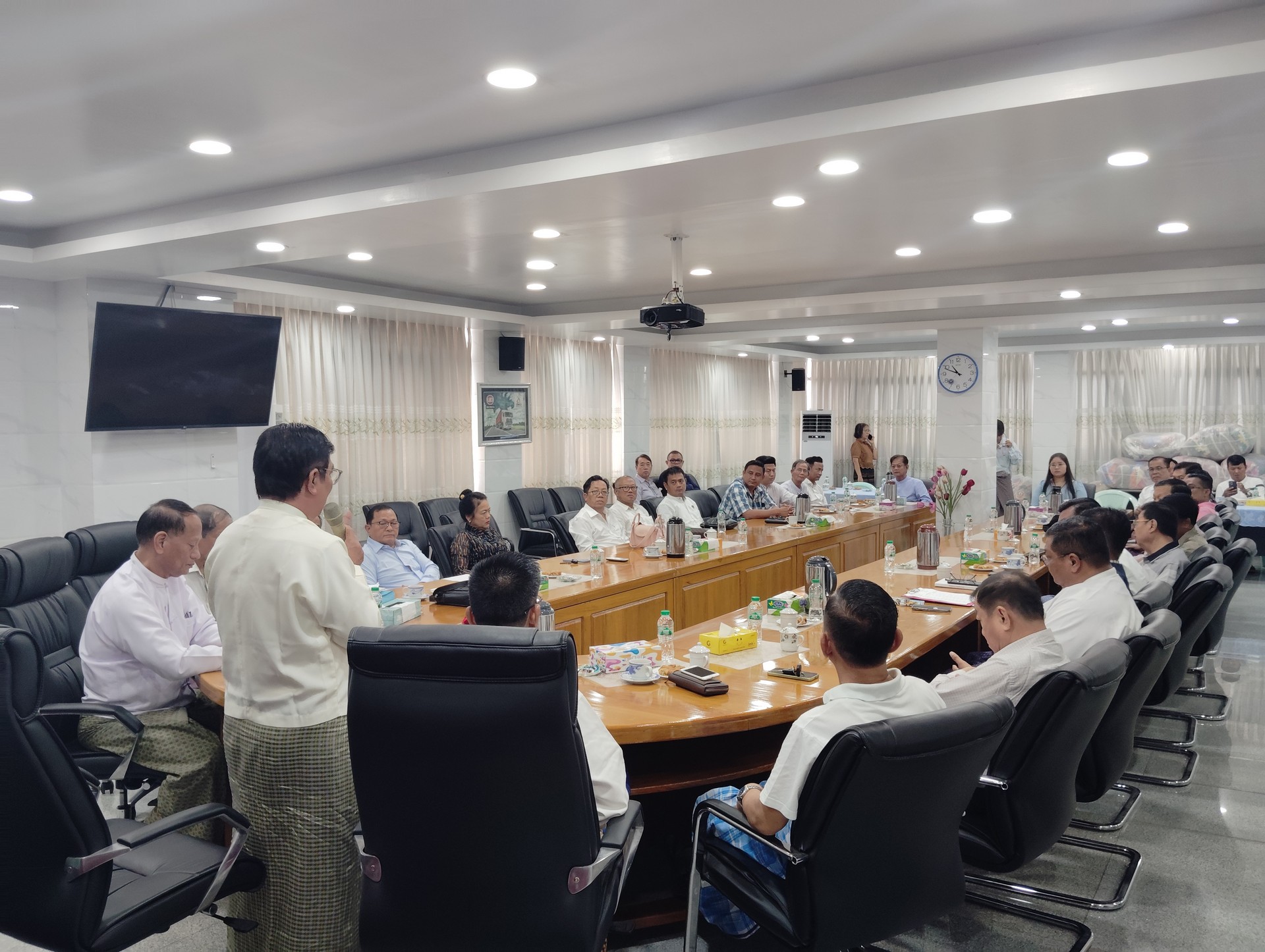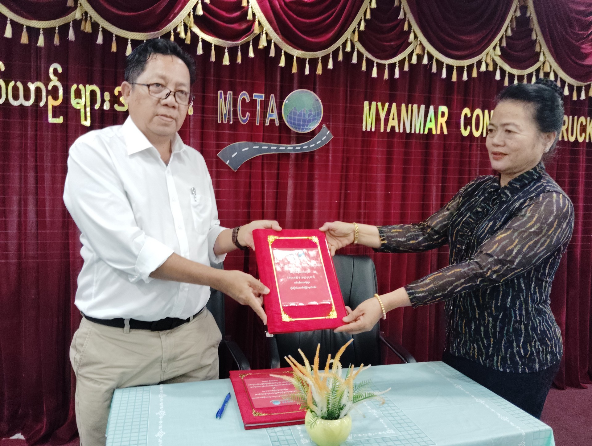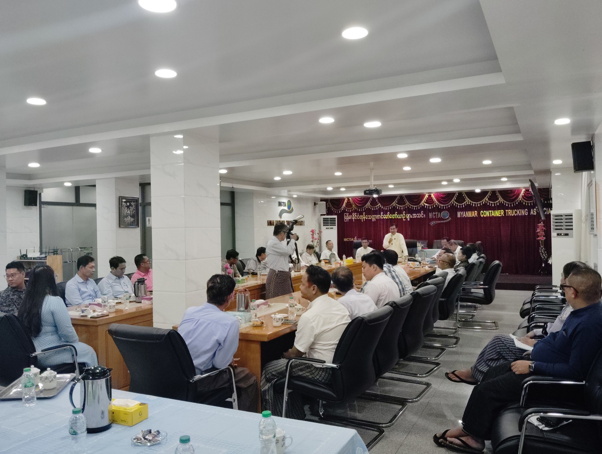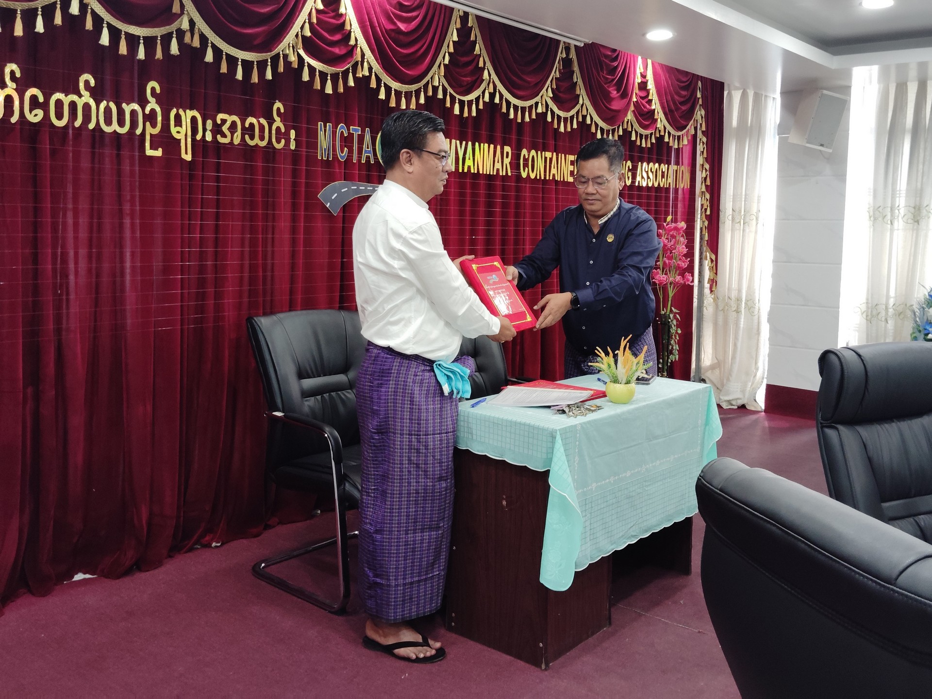 မြန်မာနိုင်ငံကုန်သေတ္တာတင်မော်တော်ယာဉ်များအသင်း ၏ (၂၀၂၂ -၂၀၂၅) အလုပ်အမှုဆောင်အဖွဲ့မှ (၂၀၂၅ -၂၀၂၈) အလုပ်အမှုဆောင်အဖွဲ့သို့ လုပ်ငန်းတာဝန်များလွှဲပြောင်းပေးအပ်ခြင်း အခမ်းအနားကို အသင်းရုံးအစည်းအဝေးခန်းမ၌ ကျင်းပပြုလုပ်ခဲ့ပါသည်။