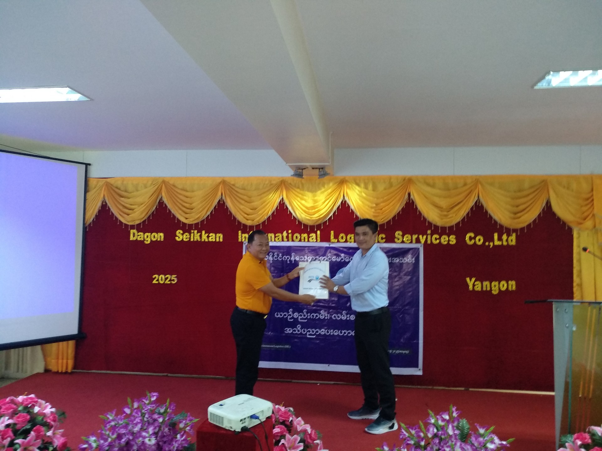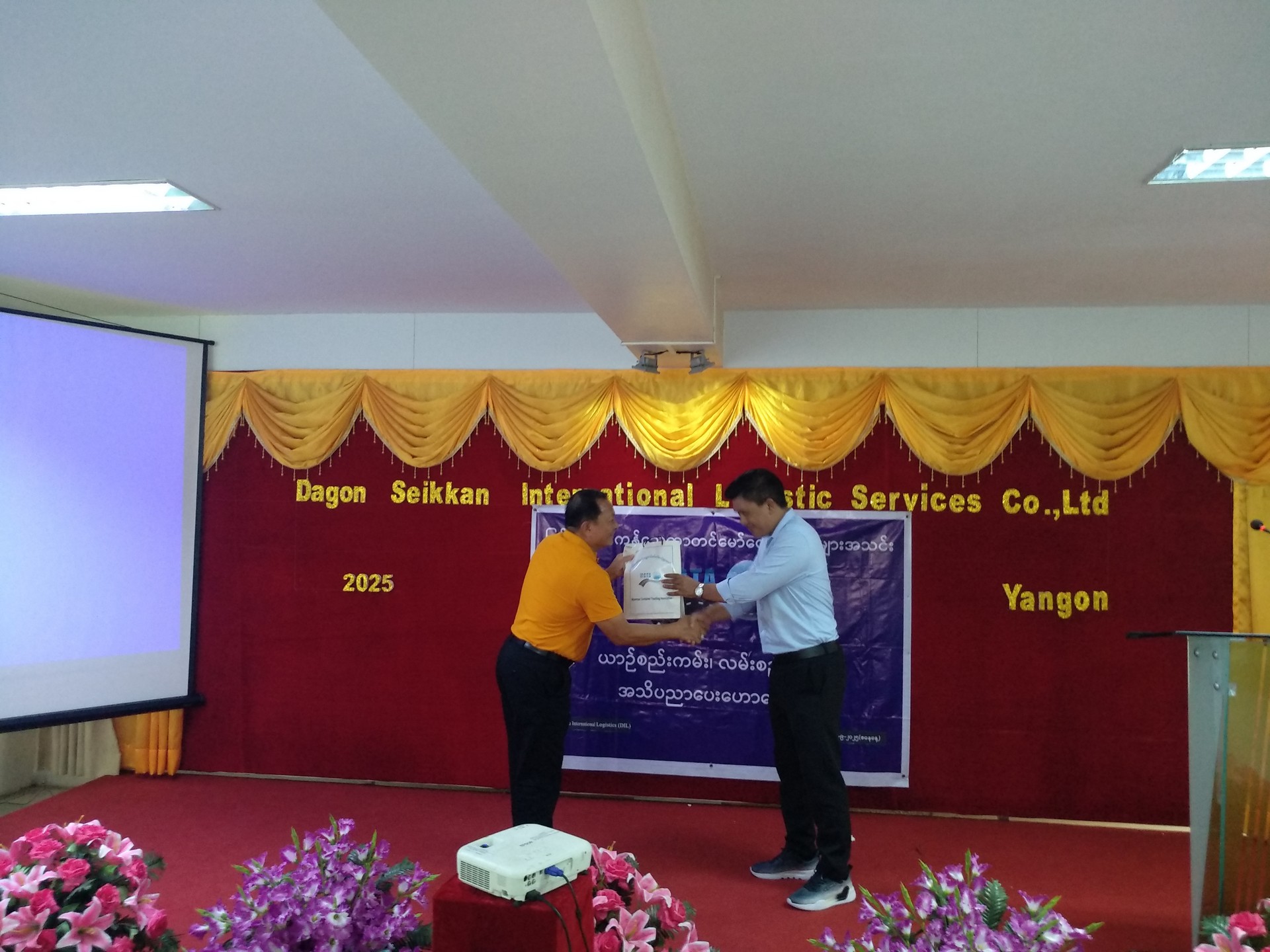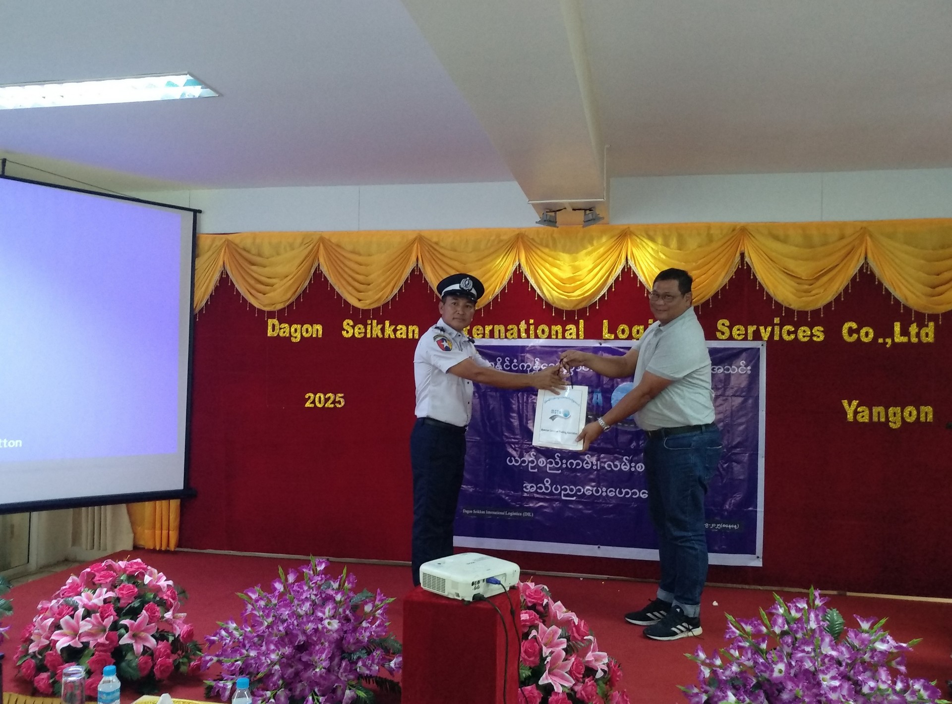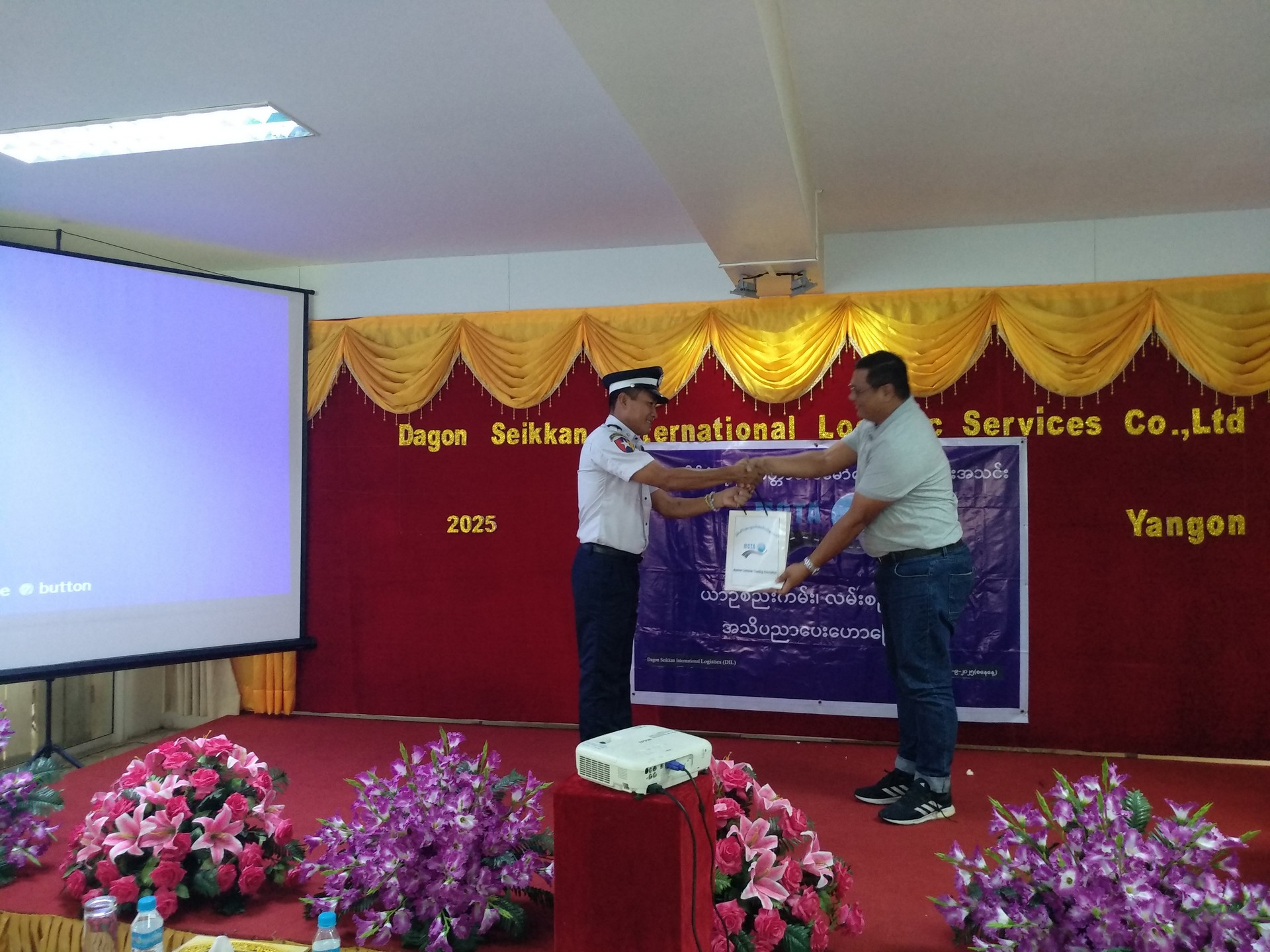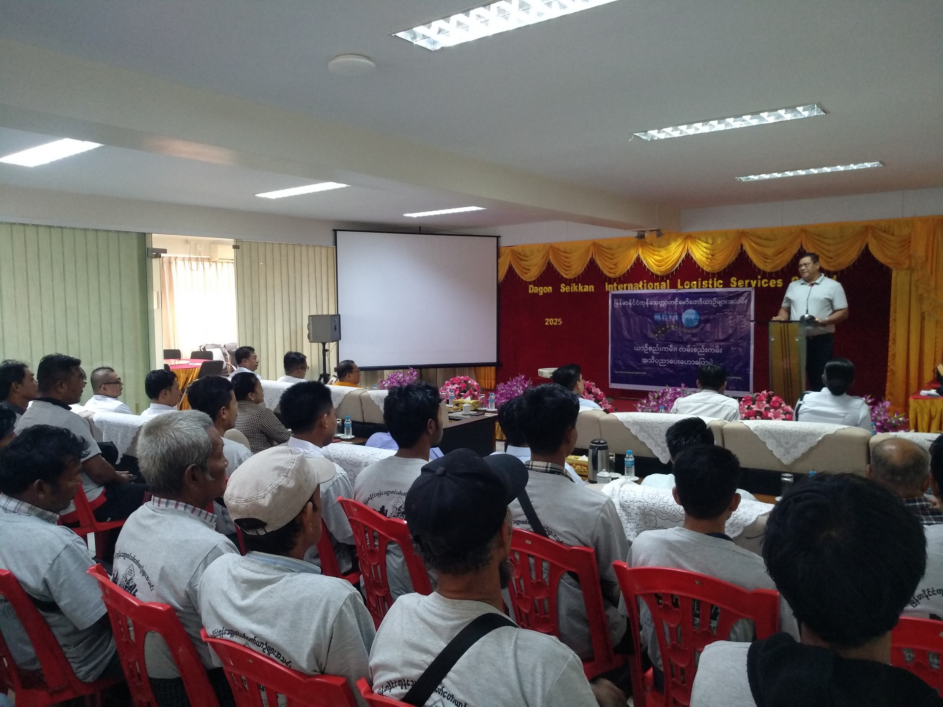 မြန်မာနိုင်ငံကုန်သေတ္တာတင်မော်တော်ယာဉ်များအသင်း ၏ ယာဉ်စည်းကမ်း၊ လမ်းစည်းကမ်း အသိပညာပေး ဟောပြောပွဲကို ၂၇.၉.၂၀၂၅ ခုနှစ် (စနေနေ့) တွင် DIL Co., Ltd. ၌ကျင်းပပြုလုပ်ခဲ့ပါသည်။ အခမ်းအနားသို့ ယာဉ်ထိန်းတပ်ဖွဲ့နှင့် သက်ဆိုင်ရာမှတာဝန်ရှိပုဂ္ဂိုလ်များတက်ရောက်၍အသိပညာပေးဟောပြောခဲ့ကြပြီးအသင်းအလုပ်အမှုဆောင်များ၊ ကုန်သေတ္တာတင်ယာဉ်မောင်းများတက်ရောက်ခဲ့ကြပါသည်။ တက်ရောက်လာကြသော ယာဉ်မောင်းများအားအသင်းမှ လက်ဆောင်တီရှပ်များဝေငှခဲ့ပြီး လက်ဖက်ရည်နှင့်မုန့်များဖြင့်တည်ခင်း ကျွေးမွေးခဲ့ပါသည်။