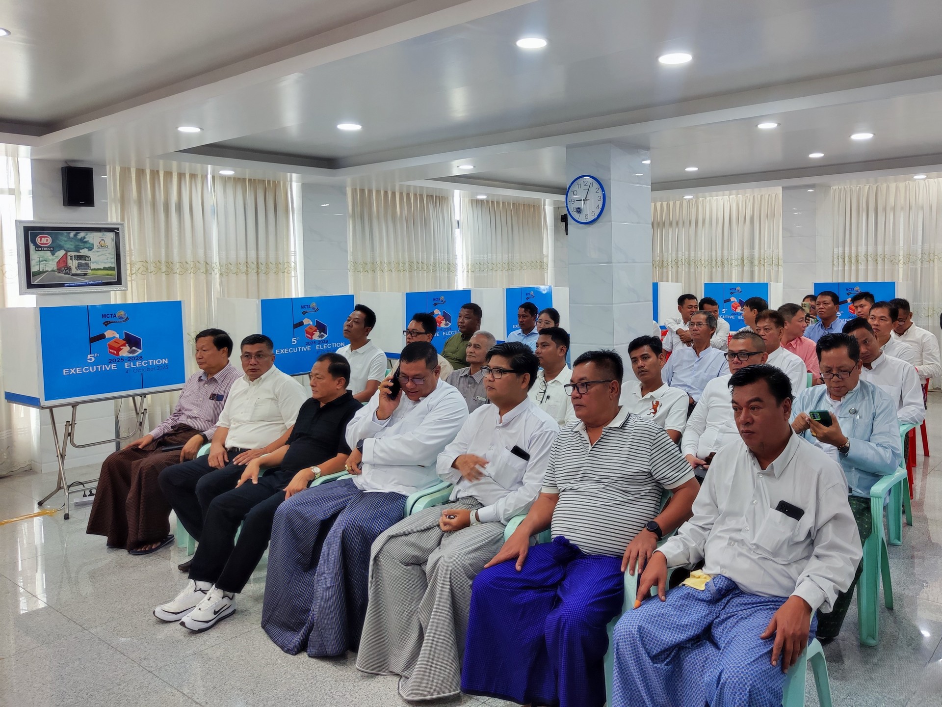 မြန်မာနိုင်ငံကုန်သေတ္တာတင်မော်တော်ယာဉ်များအသင်း၏ ပဉ္စမအကြိမ်မြောက် အလုပ်အမှုဆောင်ရွေးချယ်တင်မြှောက်ပွဲအခမ်းအနား ကျင်းပခြင်း။