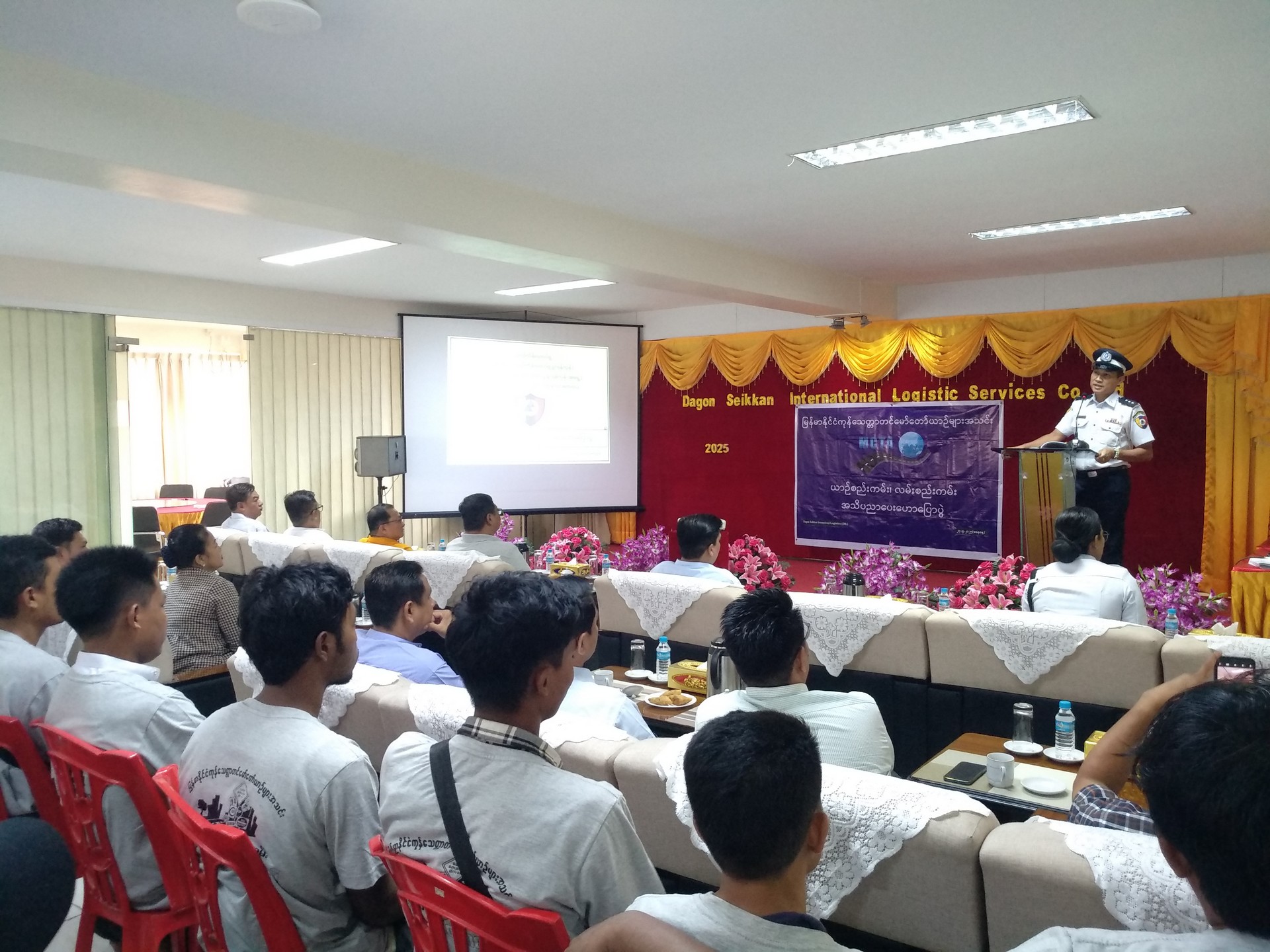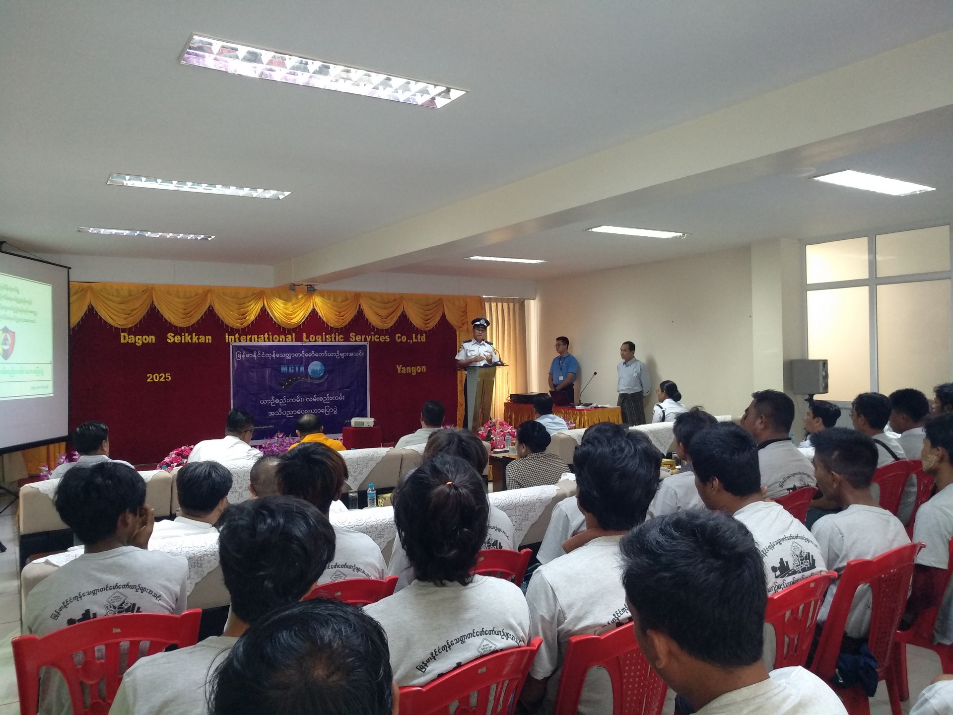 မြန်မာနိုင်ငံကုန်သေတ္တာတင်မော်တော်ယာဉ်များအသင်း ၏ ယာဉ်စည်းကမ်း၊ လမ်းစည်းကမ်း အသိပညာပေး ဟောပြောပွဲကို ၂၇.၉.၂၀၂၅ ခုနှစ် (စနေနေ့) တွင် DIL Co., Ltd. ၌ကျင်းပပြုလုပ်ခဲ့ပါသည်။ အခမ်းအနားသို့ ယာဉ်ထိန်းတပ်ဖွဲ့နှင့် သက်ဆိုင်ရာမှတာဝန်ရှိပုဂ္ဂိုလ်များတက်ရောက်၍အသိပညာပေးဟောပြောခဲ့ကြပြီးအသင်းအလုပ်အမှုဆောင်များ၊ ကုန်သေတ္တာတင်ယာဉ်မောင်းများတက်ရောက်ခဲ့ကြပါသည်။ တက်ရောက်လာကြသော ယာဉ်မောင်းများအားအသင်းမှ လက်ဆောင်တီရှပ်များဝေငှခဲ့ပြီး လက်ဖက်ရည်နှင့်မုန့်များဖြင့်တည်ခင်း ကျွေးမွေးခဲ့ပါသည်။