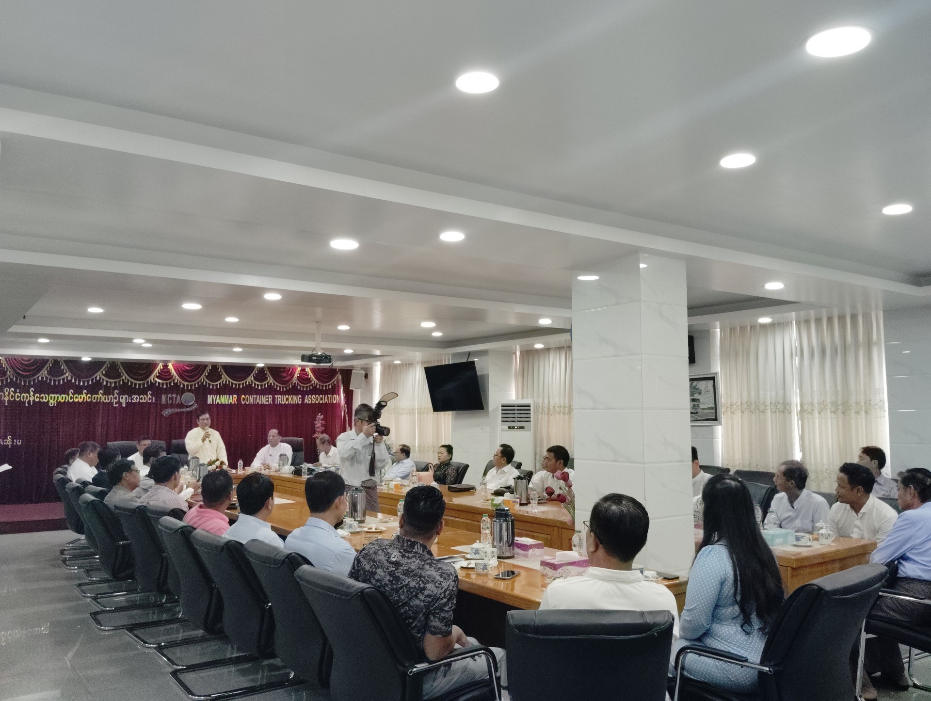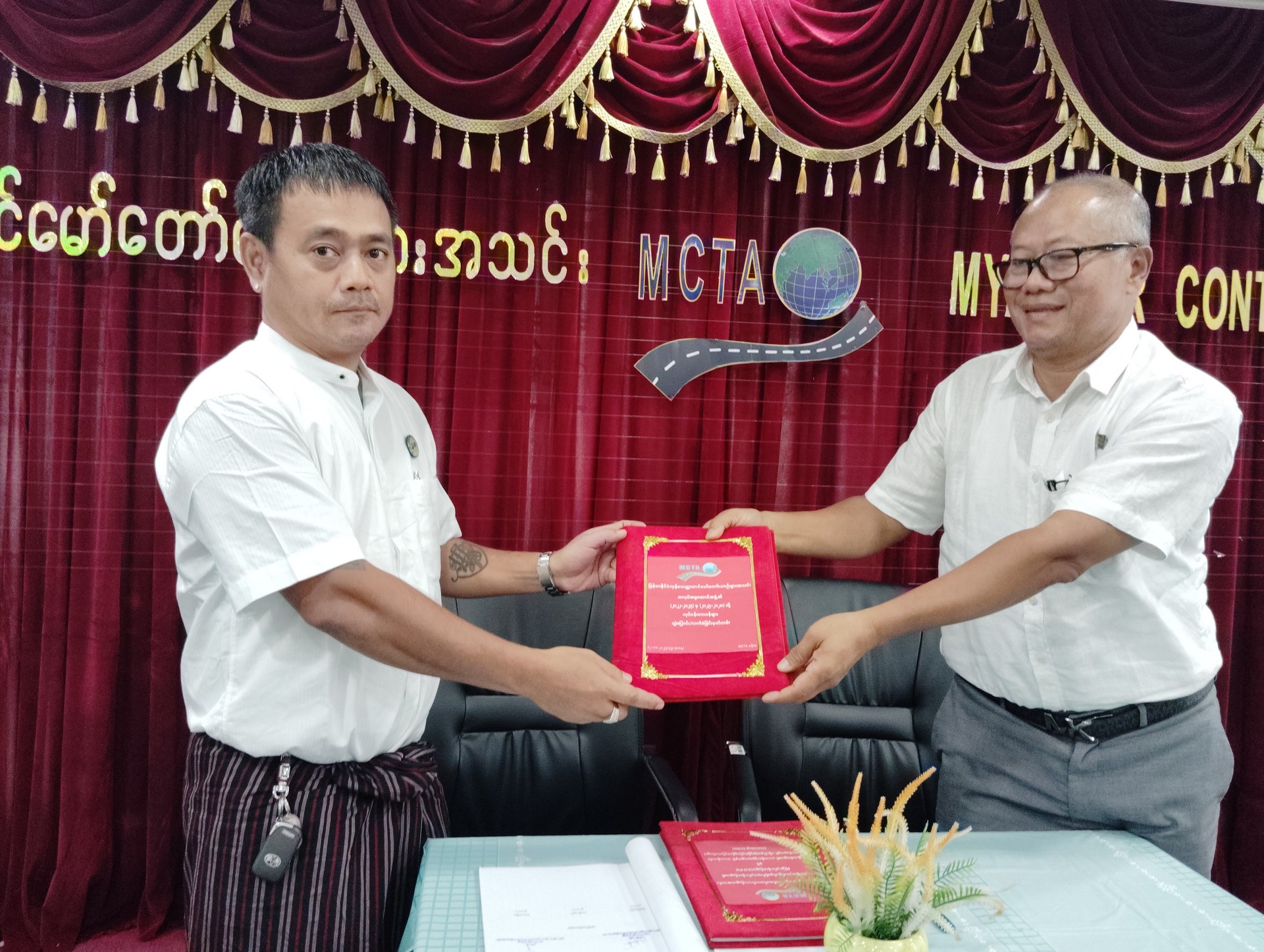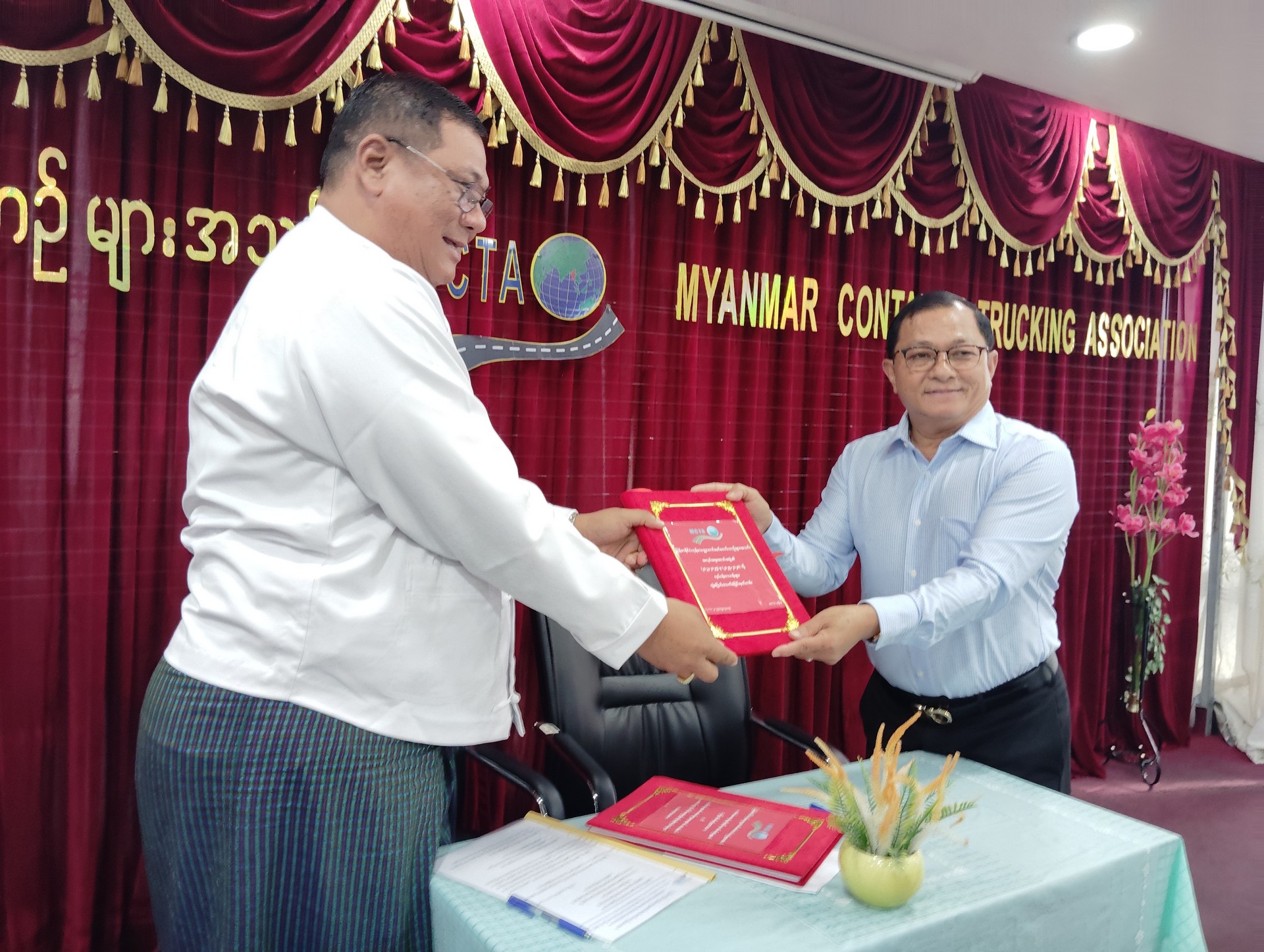 မြန်မာနိုင်ငံကုန်သေတ္တာတင်မော်တော်ယာဉ်များအသင်း ၏ (၂၀၂၂ -၂၀၂၅) အလုပ်အမှုဆောင်အဖွဲ့မှ (၂၀၂၅ -၂၀၂၈) အလုပ်အမှုဆောင်အဖွဲ့သို့ လုပ်ငန်းတာဝန်များလွှဲပြောင်းပေးအပ်ခြင်း အခမ်းအနားကို အသင်းရုံးအစည်းအဝေးခန်းမ၌ ကျင်းပပြုလုပ်ခဲ့ပါသည်။
